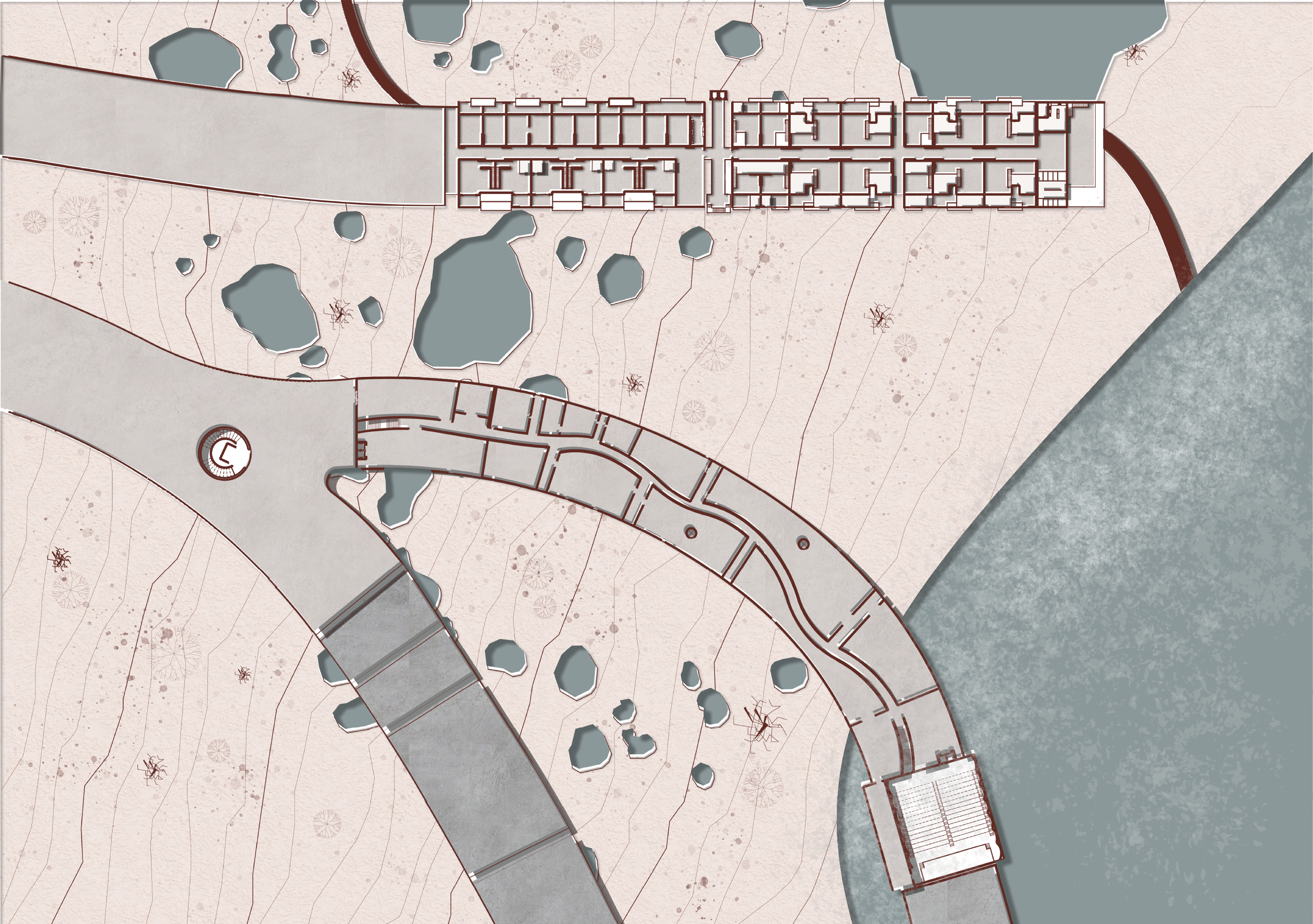 The project deals with the planning and implementation of architecture alongside wild nature and proposing a unique solution for dealing with construction on unstable ground.