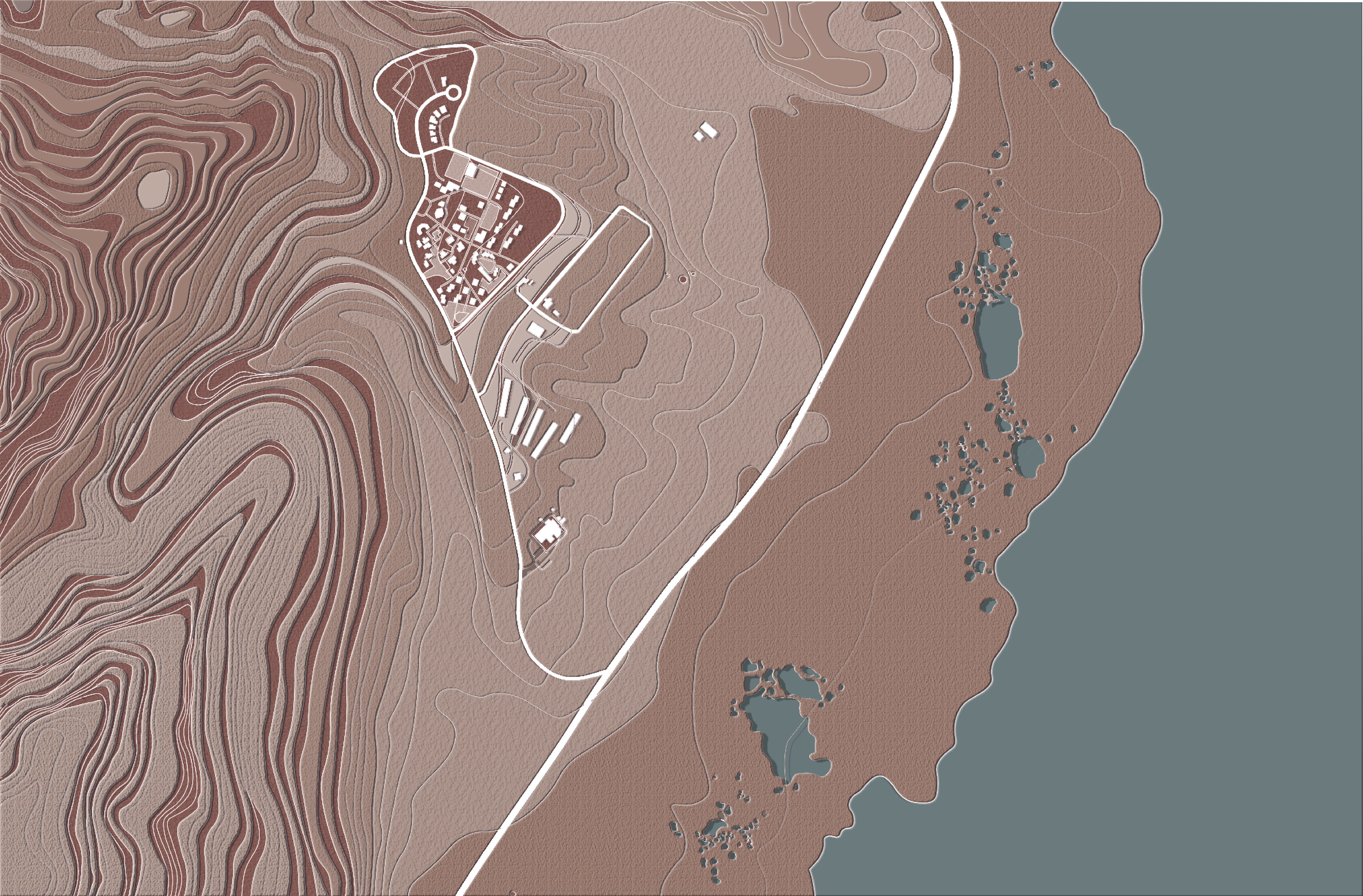 I chose to locate the project in the northern area of the Dead Sea, since all the resort complexes are in the southern area and also due to the large number of sinkholes in the northern area that prevent visitors from arriving.