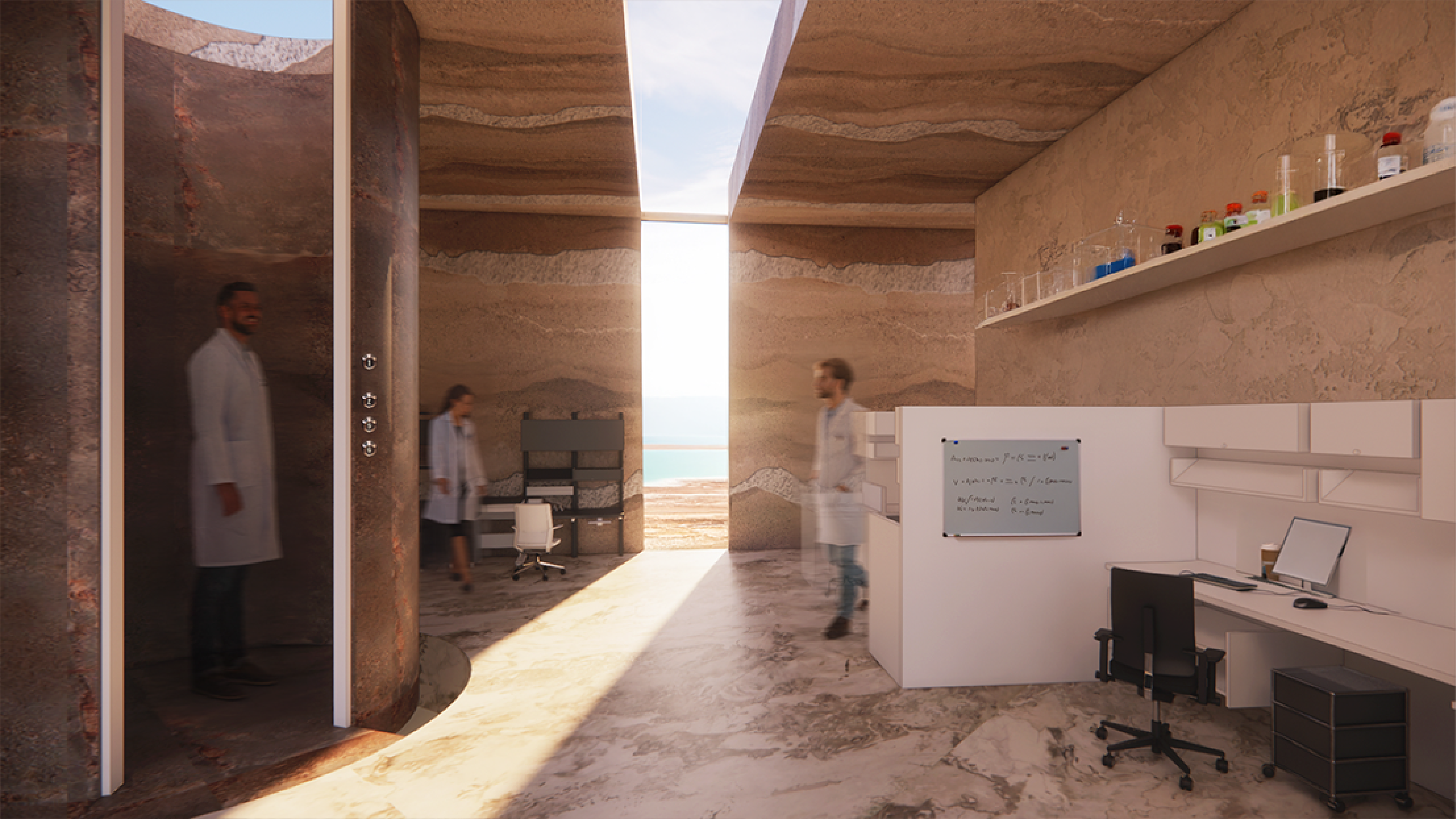 The sinkhole phenomenon in itself is dangerous and the ground beneath it is unstable. Today, these areas are blocked from access and construction in them is mostly prohibited. I saw in this special landscape phenomenon planning and tourism potential, which is why I chose to locate the project in the Mitzpe Shalem area, which is located in the north of the Dead Sea.