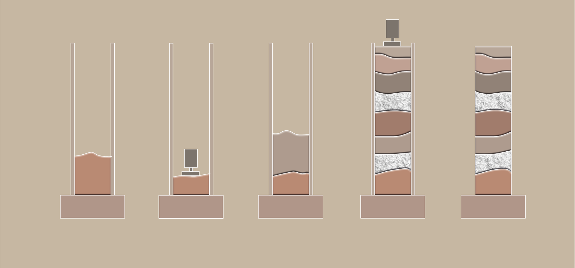 During the construction process, a moist mixture of soil is compacted into an external supporting frame. Once the soil has been compacted, the wall frames can be removed immediately.